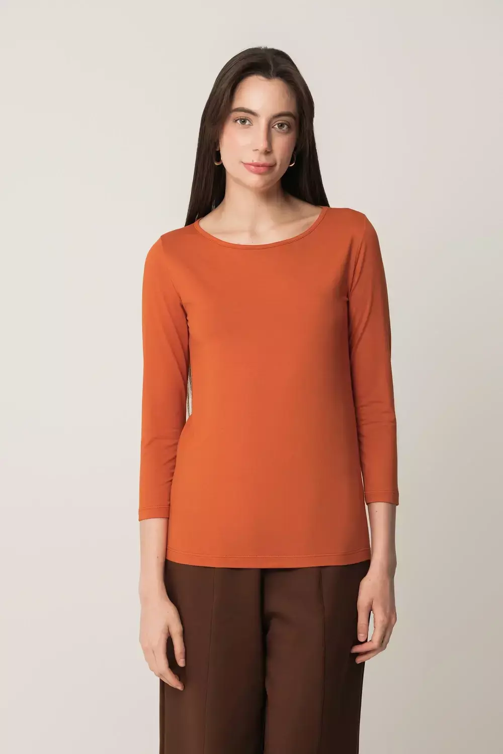 BLUSA MANGA 3/4 DECOTE CANOA MODAL LARANJA TERRACOTA