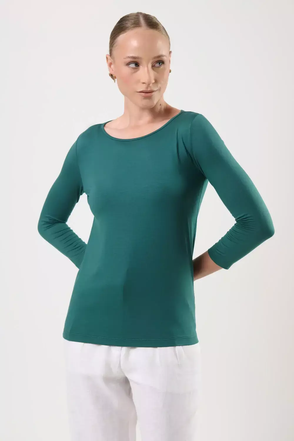 BLUSA MANGA 3/4 DECOTE CANOA MODAL VERDE ÉDEN