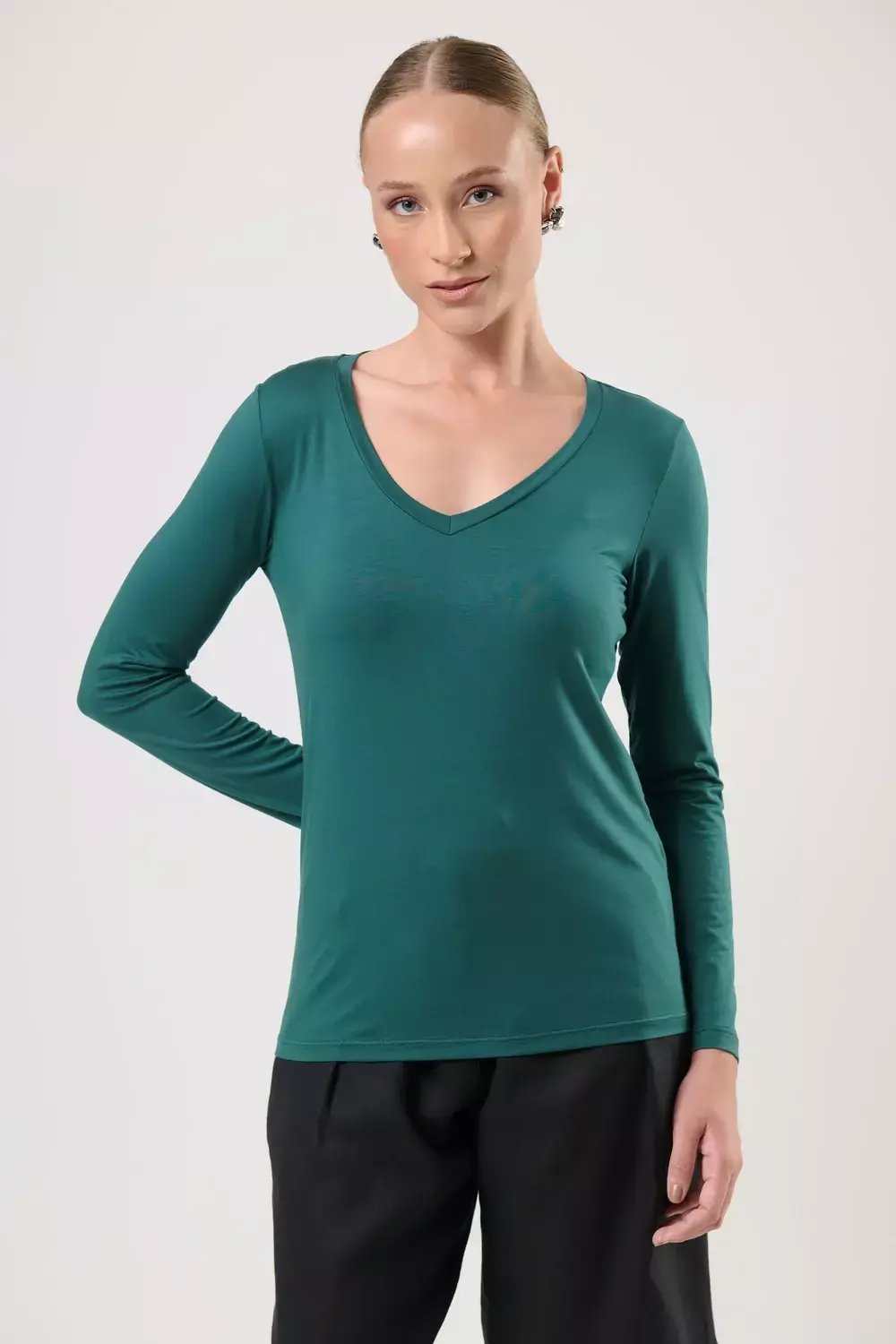 BLUSA MANGA LONGA GOLA V MODAL VERDE ÉDEN