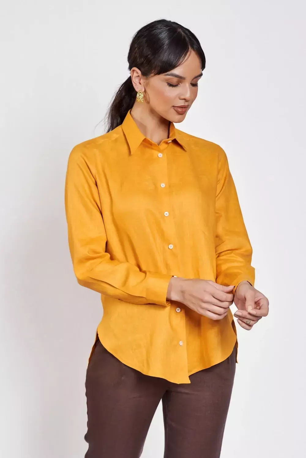 A Camisa de linho possui composição 100% Linho, um artigo extremamente sofisticado. Camisa lisa com abotoamento clássico frontal e abertura lateral, possibilitando o uso em ocasiões formais e também descontraídas. É um item essencial para um guarda-roupa Easy & Chic , em qualquer estação. COMPOSIÇÃO: 100% Linho **NOVO TECIDO** Possui uma gramatura mais leve.