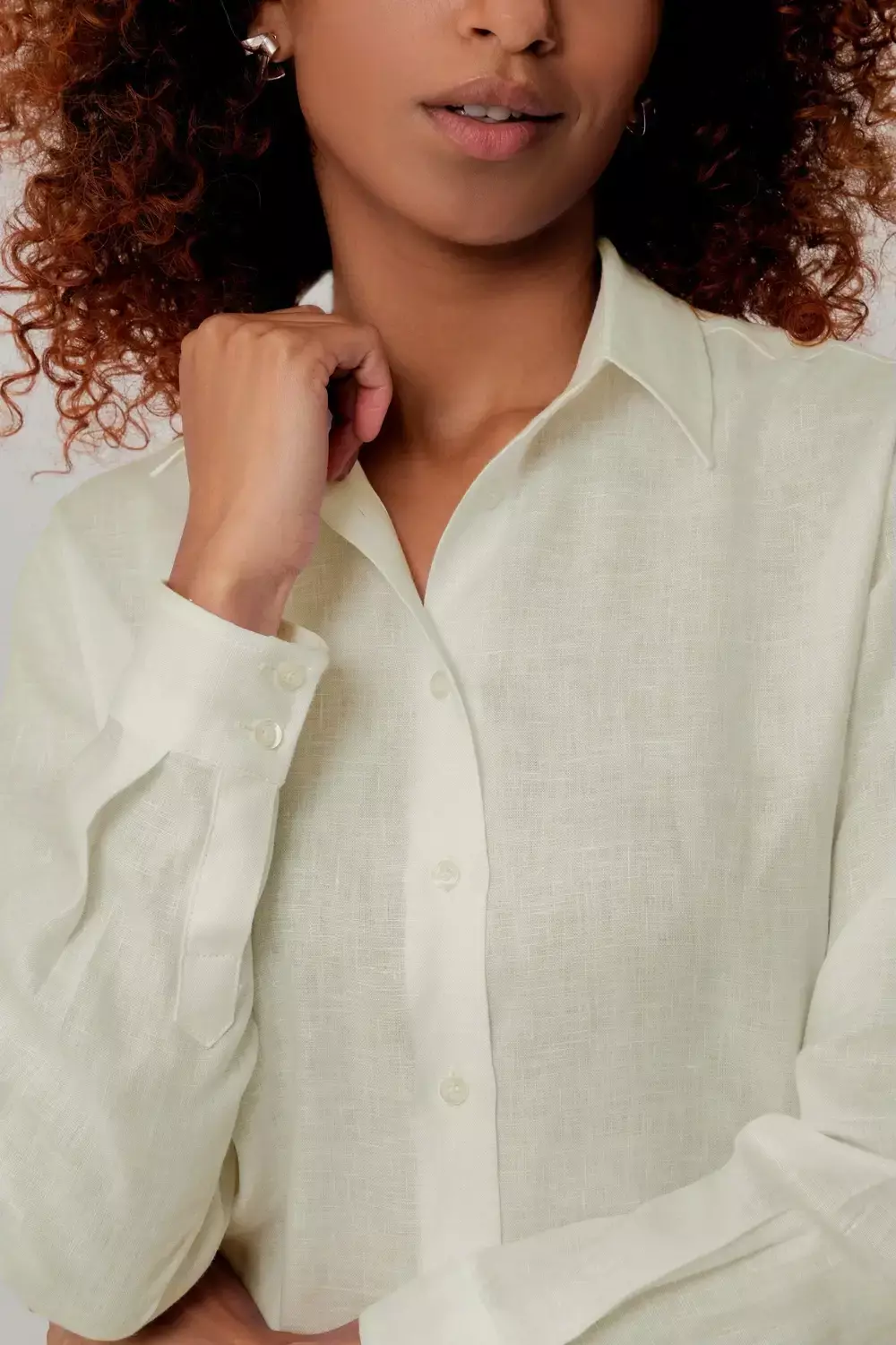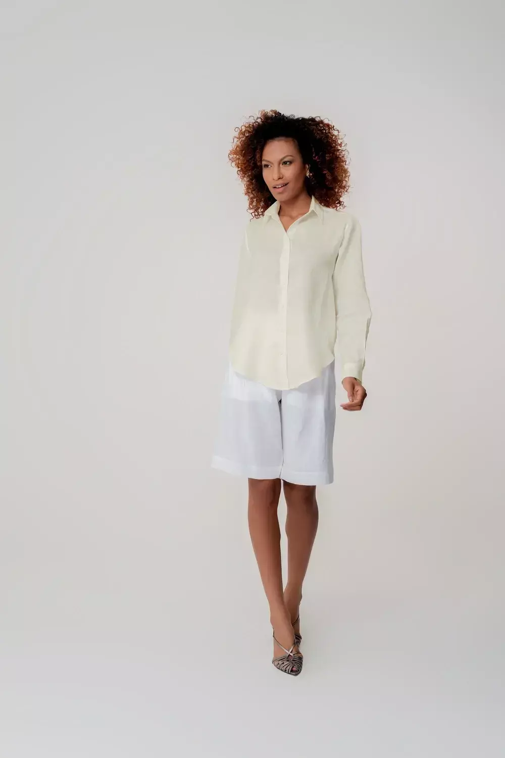 A Camisa de linho possui composição 100% Linho, um artigo extremamente sofisticado. Camisa lisa com abotoamento clássico frontal e abertura lateral, possibilitando o uso em ocasiões formais e também descontraídas. É um item essencial para um guarda-roupa Easy & Chic , em qualquer estação. COMPOSIÇÃO: 100% Linho **NOVO TECIDO** Possui uma gramatura mais leve.