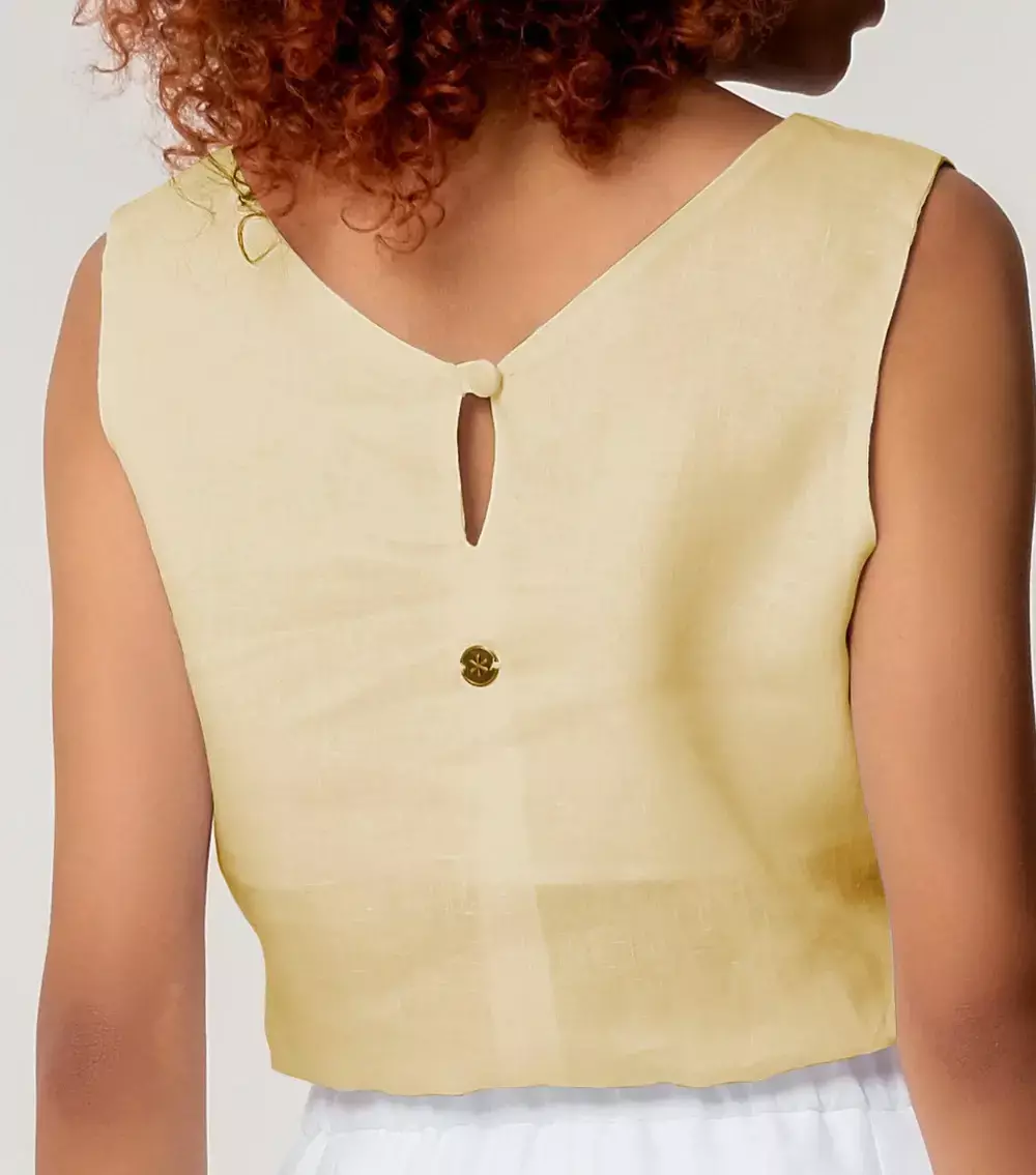 A regata de linho possui corte reto e forro no busto, garantindo que não haja transparência. A peça possui decote em V não muito profundo e fechamento com botão na parte traseira garantindo conforto e facilidade em vestir a peça. Pensada para acompanhar a mulher Lemon, a regata é minimalista, atemporal, elegante e versátil. Na Lemon Basics você pode encontrar uma seleção exclusiva de produtos feitos com materiais nobres e produzidos artesanalmente. Cada peça é cuidadosamente criada com atenção aos detalhes, resultando em um produto único e de alta qualidade. Nossa proposta é oferecer itens essenciais para um guarda-roupa Easy & Chic, que podem ser usados em qualquer estação. Combinando estilo e praticidade, nossos produtos são perfeitos para quem busca peças versáteis e elegantes. Nós nos orgulhamos em oferecer produtos que são feitos para durar, com um acabamento refinado que é evidente em cada detalhe. Nós acreditamos que moda é sobre expressar sua personalidade e estilo de vida, sempre de olho na sustentabilidade através de produtos duráveis. Material: 100% Linho Tamanho: Acesse a tabela de medida disponível nas fotos do produto e confira como tirar suas medidas e definir o tamanho ideal. Obs: podem ocorrer pequenas variações das cores nas imagens do site.