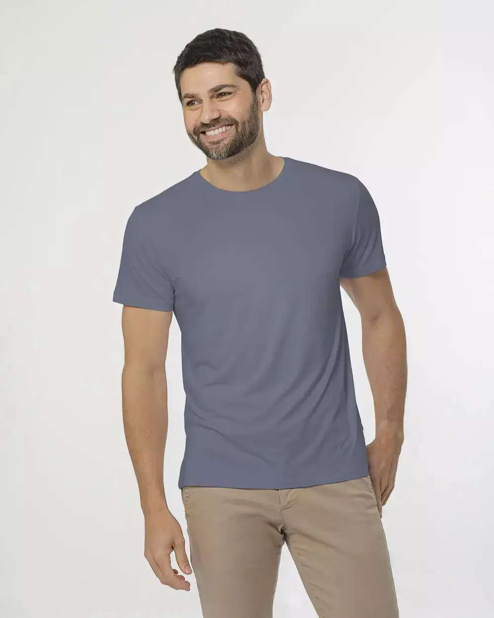 A T-shirt gola redonda Masculina é um artigo extremamente essencial para o guarda-roupa masculino. Sua modelagem é anatômica, proporcionando mobilidade e praticidade no seu dia a dia. T-shirt Gola Redonda Masculina Modal. Composição: 92% modal e 8% elastano O nosso Modal Premium é composto por fibras naturais feitas da celulose extraída da árvore Faia, localizada na Áustria. Todo o seu processo de extração e fabricação é cuidadosamente realizado para minimizar os danos ao meio ambiente, por isso é considerado um processo sustentável. Este tecido destaca-se por seu toque macio, leve, confortável e de alta durabilidade. O modal possui uma impressionante resistência ao encolhimento e ao peeling (as famosas bolinhas), além de ser um tecido que absorve bastante água, característica que ajuda na transpiração do corpo e faz com que a peça seja respirável. É um tecido projetado para não desbotar e possui um brilho sutil. Ele produz peças tão gostosas que você não vai querer tirar.