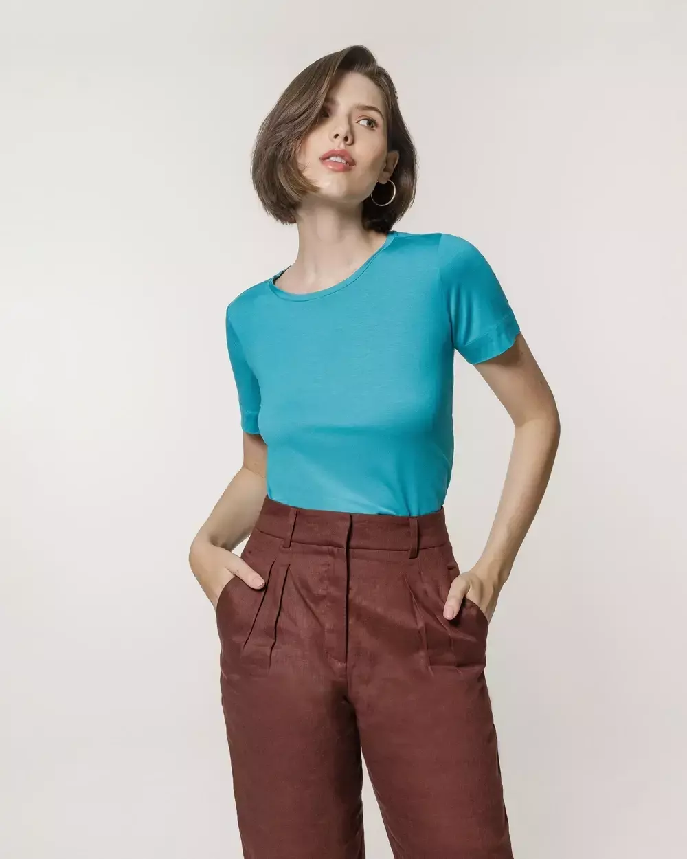 T-SHIRT GOLA CARECA MODAL PREMIUM AZUL TURQUESA
