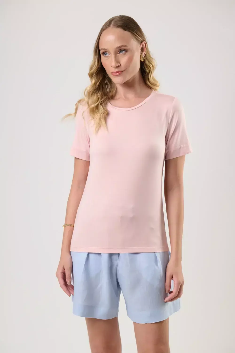 T-SHIRT GOLA CARECA MODAL PREMIUM DELICATE PINK